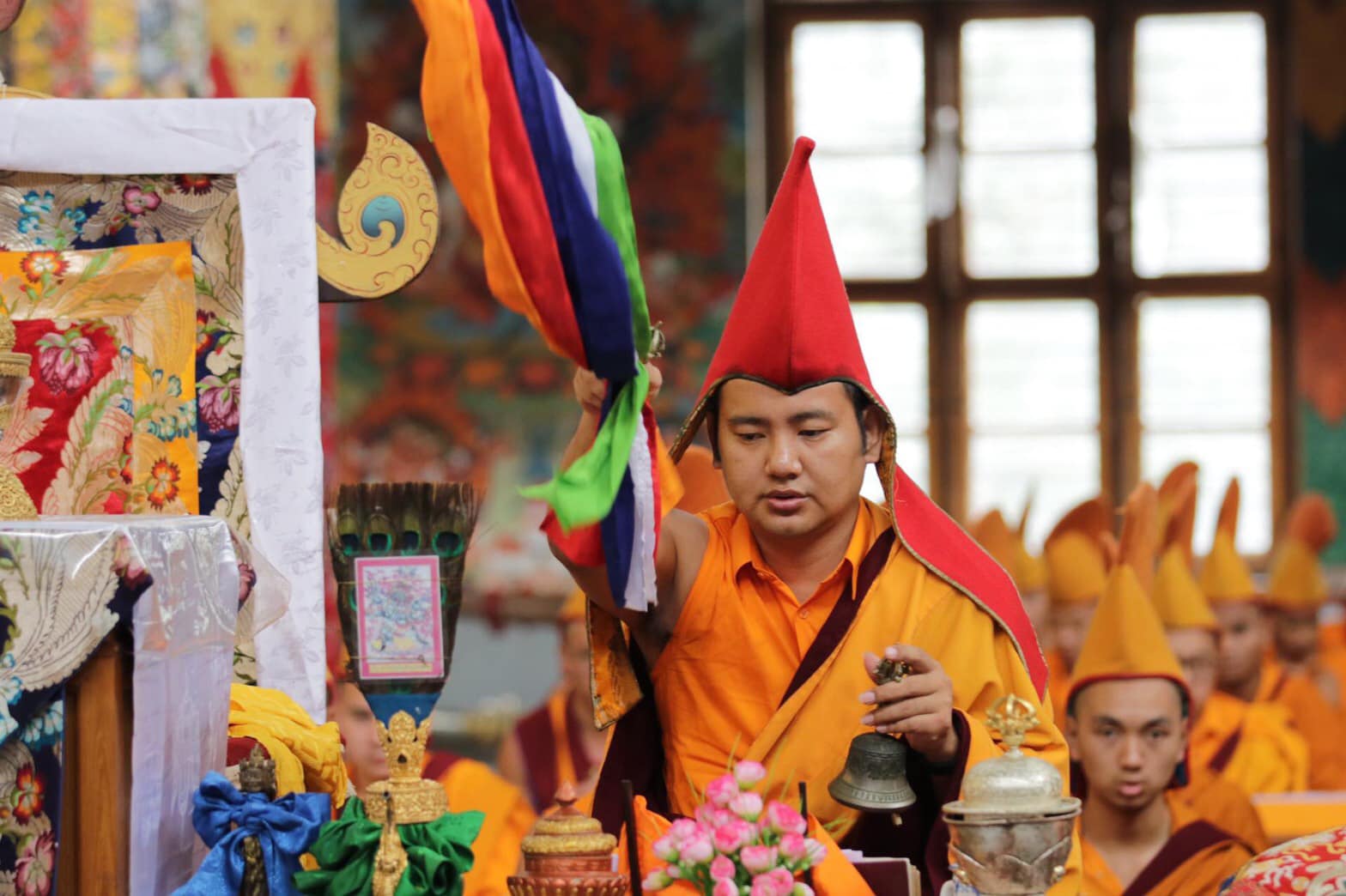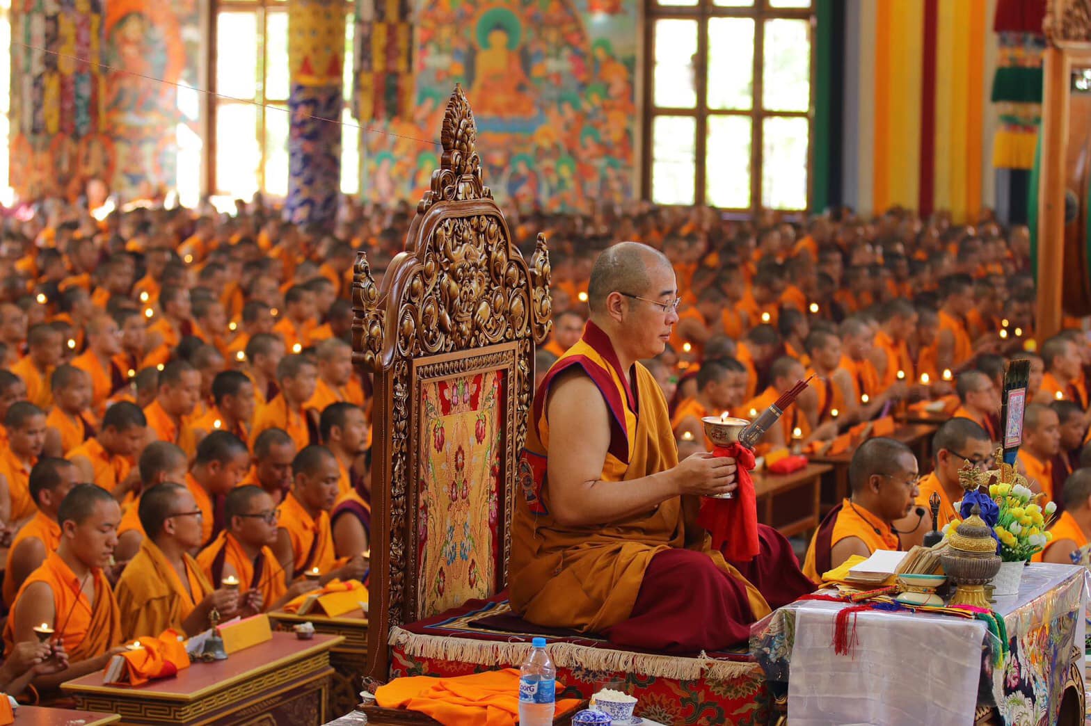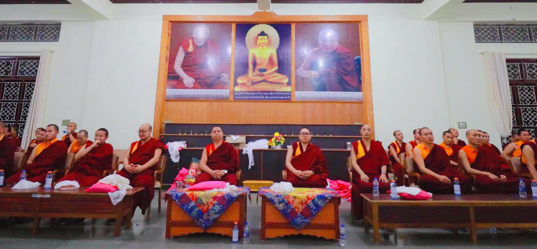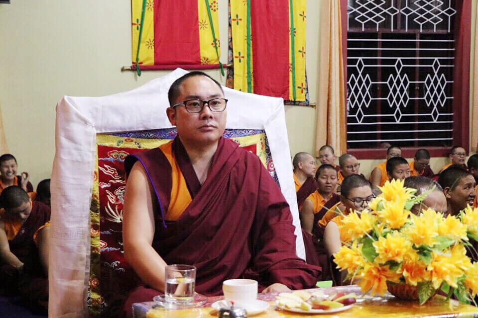 2019年4月8日 南卓林寺舊譯寧瑪 佛學院職位交接。尊貴的 索南多傑仁波切,接任佛學院院長。 The exchange of post at Namdroling Ngagyur Nyingma institute on 08.04.19.