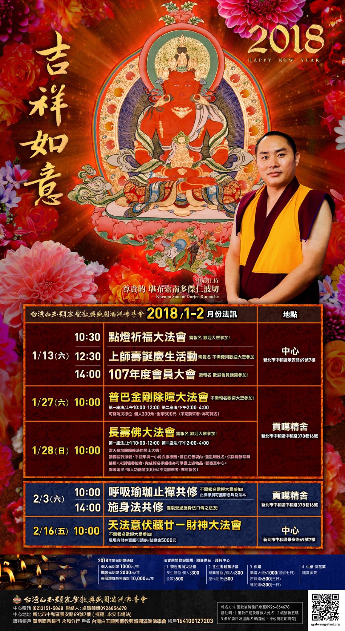 🏮歲末除舊佈新法訊🏮 2018年1️⃣月份法訊 ▪️1/13(六)上午10:30 【點燈祈福大法會】 📍法會地點:中心 ☑️需報名!歡迎大眾參加! https://goo.gl/forms/MC3yJkhEV8cVeB142 🌟2018年度光明燈通啟🌟 1、個人光明燈:1000元/年。 2、閤家光明燈:200